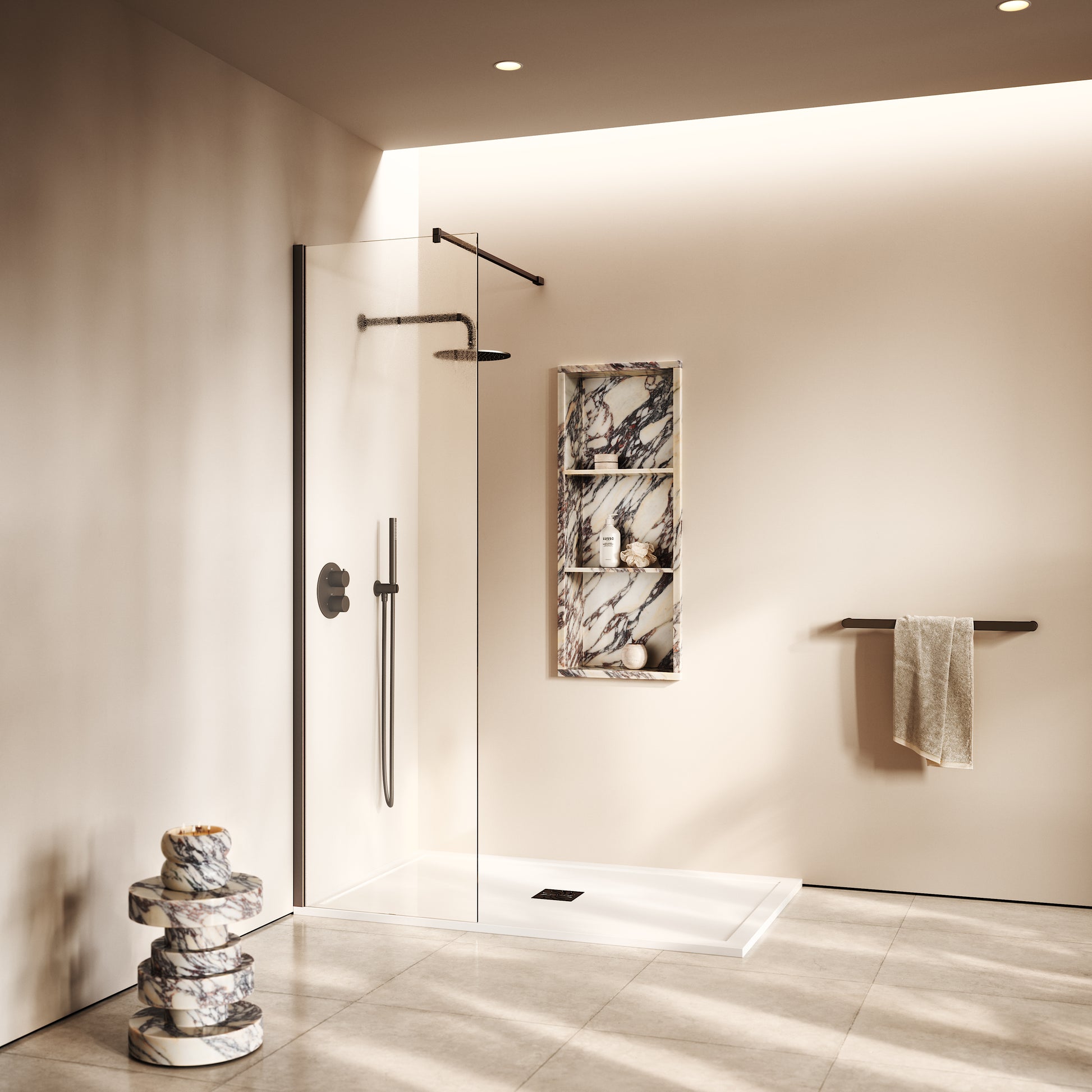 Beautifully minimal, the shower enclosure can be paired with both concrete and wooden floors, allowing you to create a sleek aesthetic throughout any space. Containing a solid stone shower tray crafted from our signature stone resin, and boasting rustic Deep Bronze accents, the Modular ensures a sophisticated addition to your bathroom, complete with all fixings needed to secure within your home.