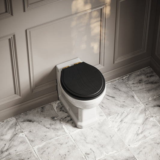 Portland Back to Wall Traditional Toilet with Solid Oak Matte Black seat (Brushed Gold Fittings)Regular price 2,130.00 AEDRegular priceUnit price / per