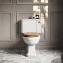 Crafted from smooth Porcelain with a close coupled cistern, the compact design is suitable for any sized bathroom, and features an elegant and efficient flush handle system. For additional comfort and strength, the Portland also comes complete with a solid wood seat. The solid oak seat is crafted with deep grain natural oak that creates a distinctive and luxurious appearance. It displays natural texture, deep lines and raised strokes.