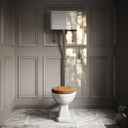 The high level design provides everything you need to achieve a traditional and elegant bathroom with exceptional quality. With a minimum height of 1800mm, the Portland features an exposed flush pipe and solid oak seat with a distinctive 1920s inspired style. The solid oak seat is crafted with deep grain natural oak that creates a distinctive and luxurious appearance. It displays natural texture, deep lines and raised strokes.