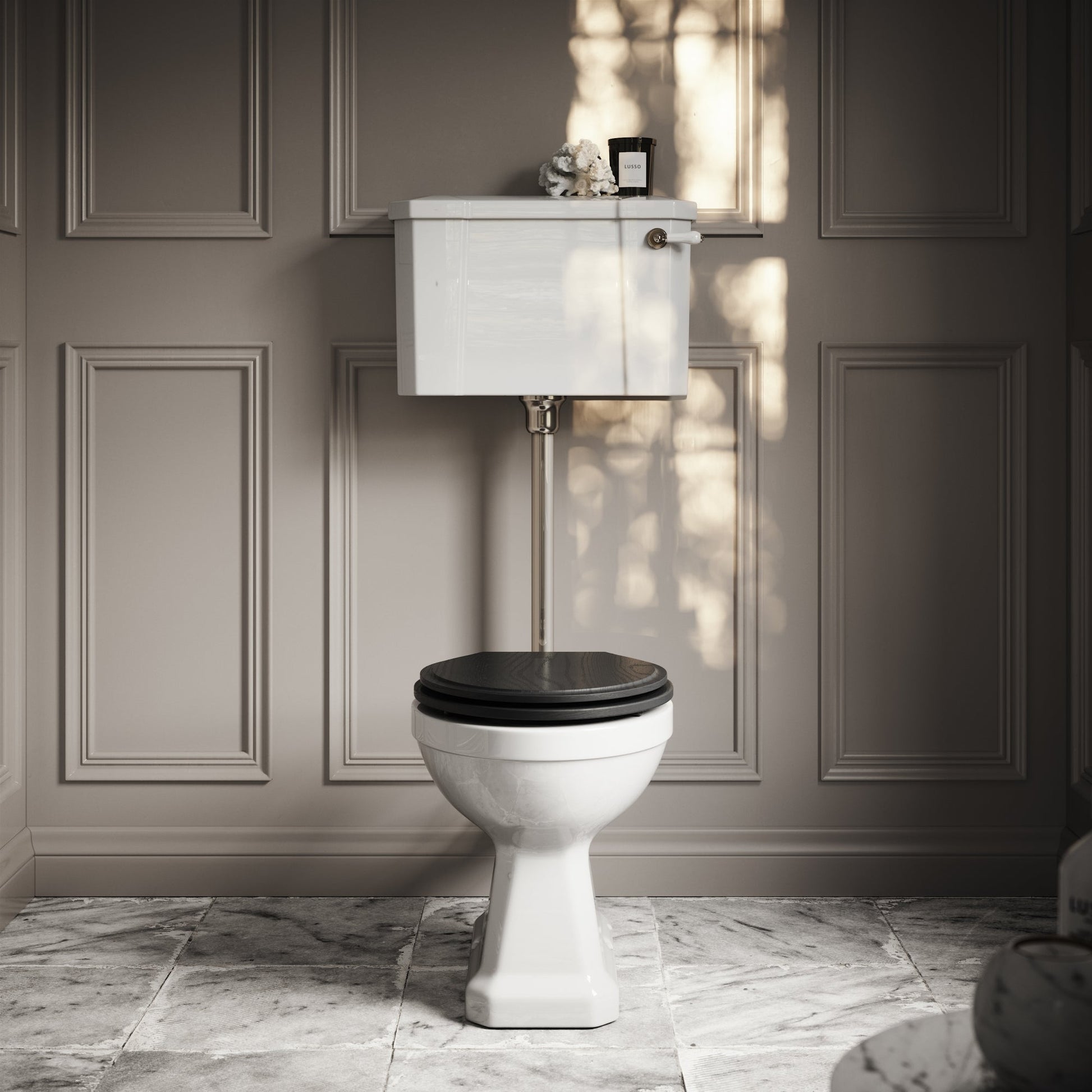 Merging traditional design with modern functionality, the Portland Low Level Toilet effortlessly integrates into luxury bathrooms, cloakrooms, and ensuites with classic interiors.