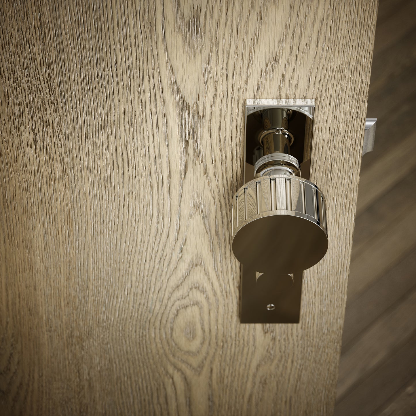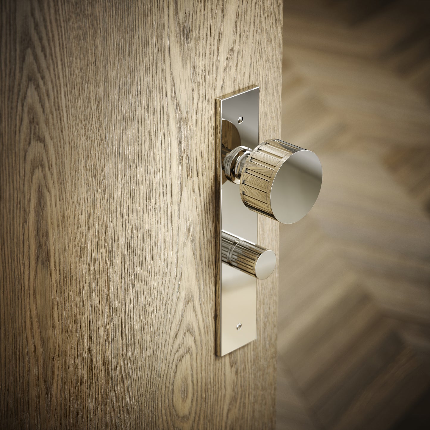 The door knob and thumbturn lock set is crafted from solid brass and is part of our Signature Collection, designed to offer ultimate luxury and longevity for your doors, whether they're installed on your bathroom door or other areas that require enhanced privacy such as offices or bedrooms. The hardware displays our beautiful polished nickel finish, inspired by the iconic Art Deco era, as well as deep flute detail which adds a textural impact.