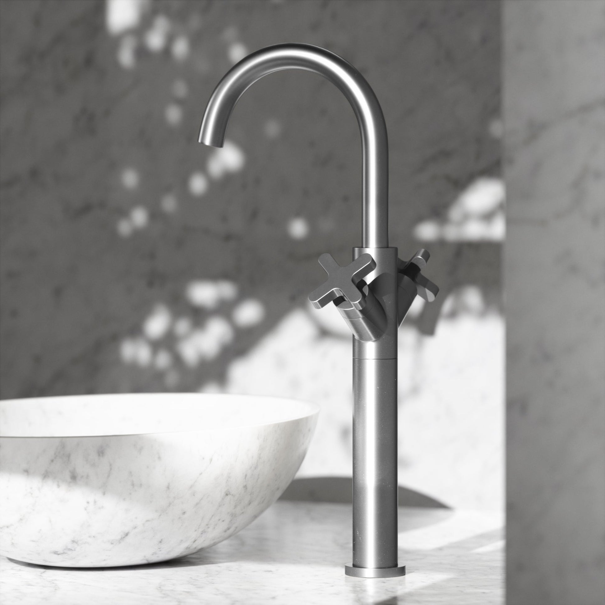 Regal Brushed Stainless Crosshead Tall Basin Mixer Tap