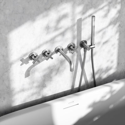 The classic crosshead design of the faucet handles adds elegance to this deck mounted tap, which is expertly engineered to be affixed directly onto your basin. Seamlessly providing hot and cold water through a sleek, elongated spout, its brushed stainless finish also creates a cohesive look when styled alongside our wider brushed stainless bathroom collections.