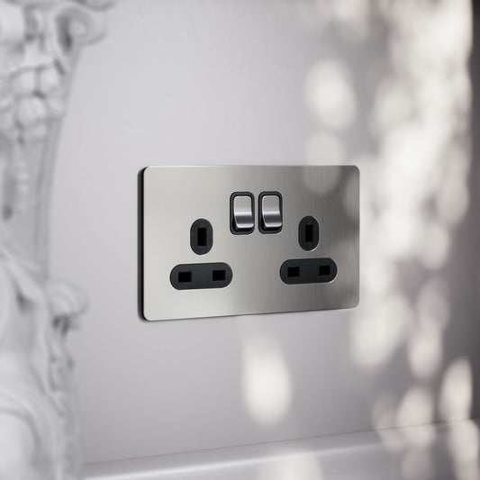 SlimTech Collection Brushed Stainless 2 Gang 13A SocketRegular price 120.00 AEDRegular priceUnit price per