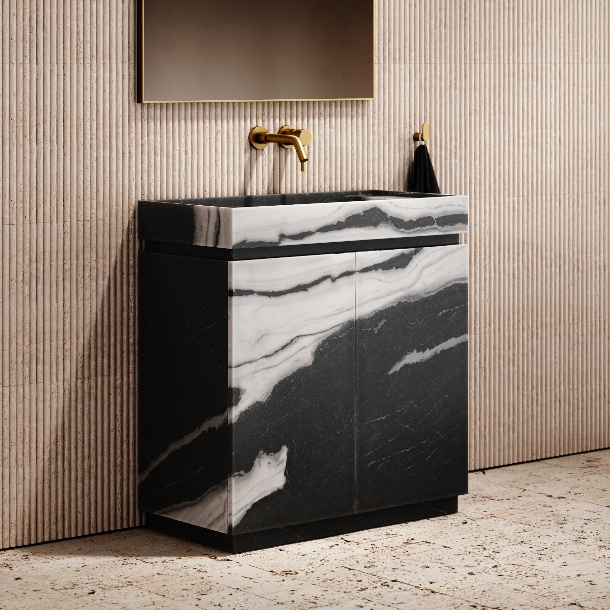 Elevate your bathroom and make a bold design statement with the Artista bathroom vanity unit, flawlessly crafted from Panda marble.