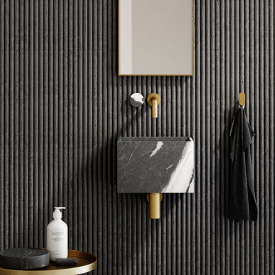 Panda marble showcases thick stripes and swathes of black and graphite grey set against a pure white backdrop, guaranteed to make a striking impact on any modern bathroom. The distinctive design features a hand finished basin, and generous storage space which is cleverly concealed by book-matched doors for a seamless aesthetic.