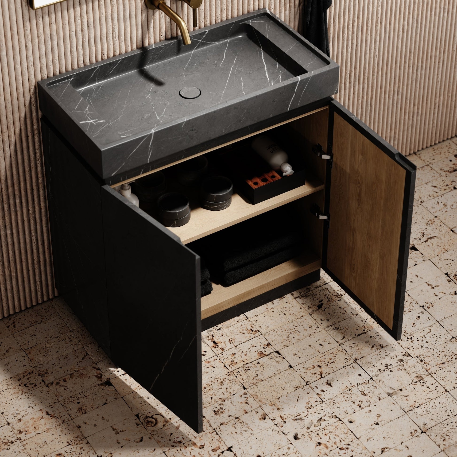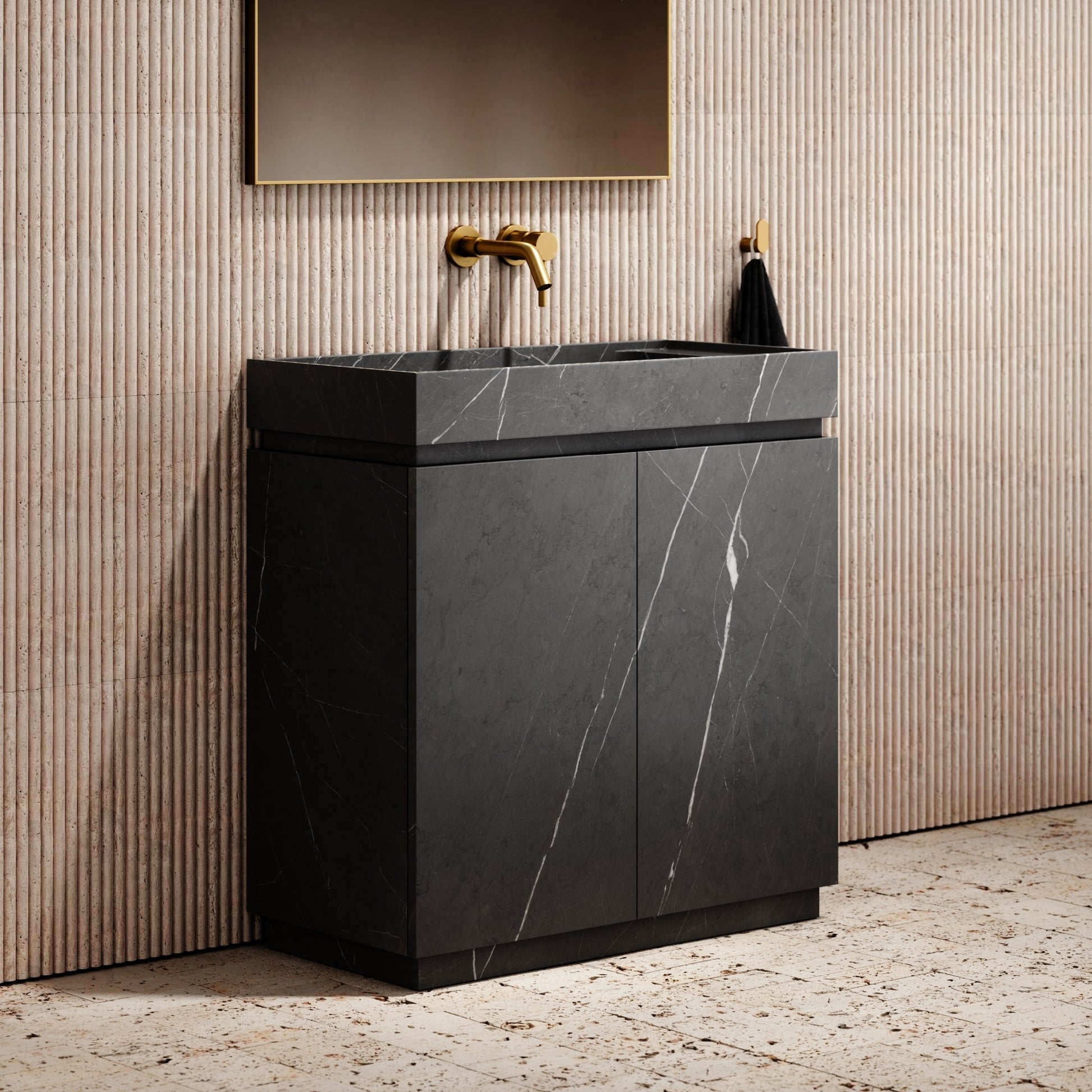 The Artista vanity unit, at 800mm, makes a bold design statement within contemporary bathrooms and ensuites, blending timeless design with the captivating qualities of Pietra Grey marble.