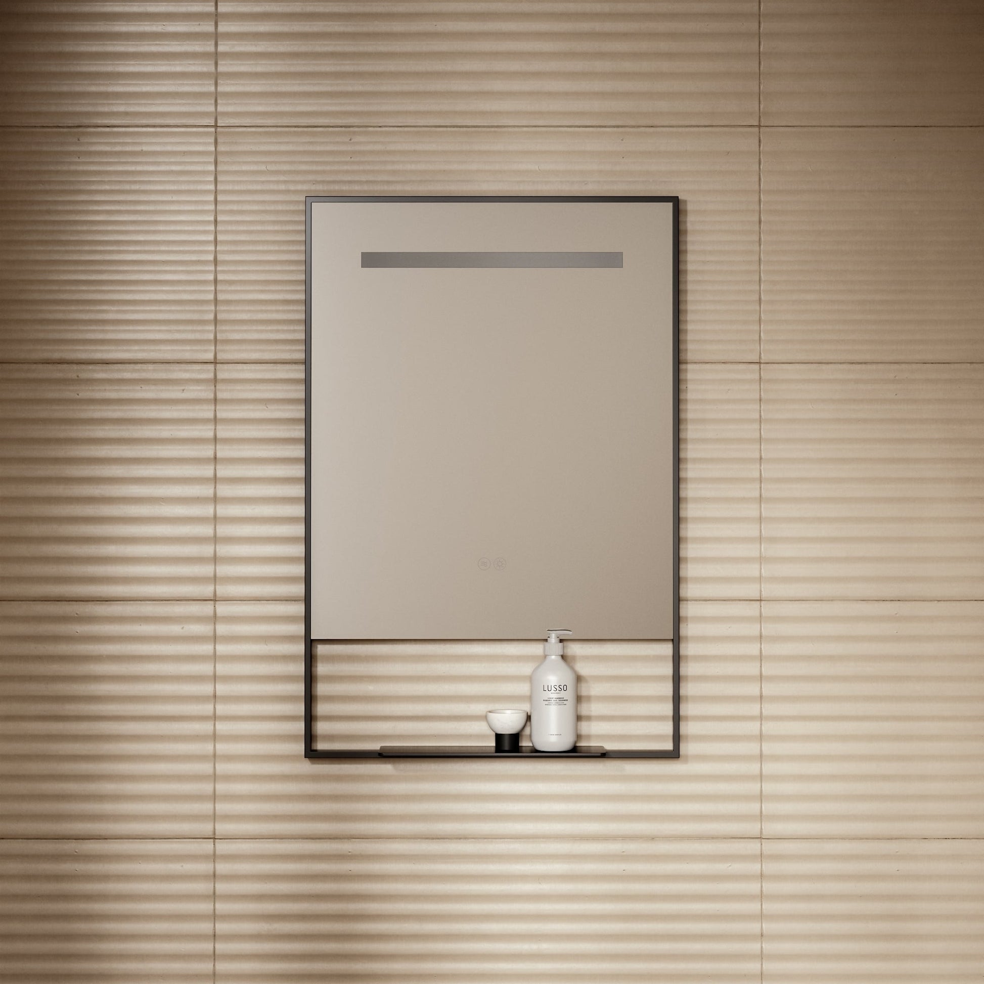 Designed with a sophisticated matte black finish, natural white back lit LED lighting, and a removable shelf that allows you to place your beauty and bathroom essentials.