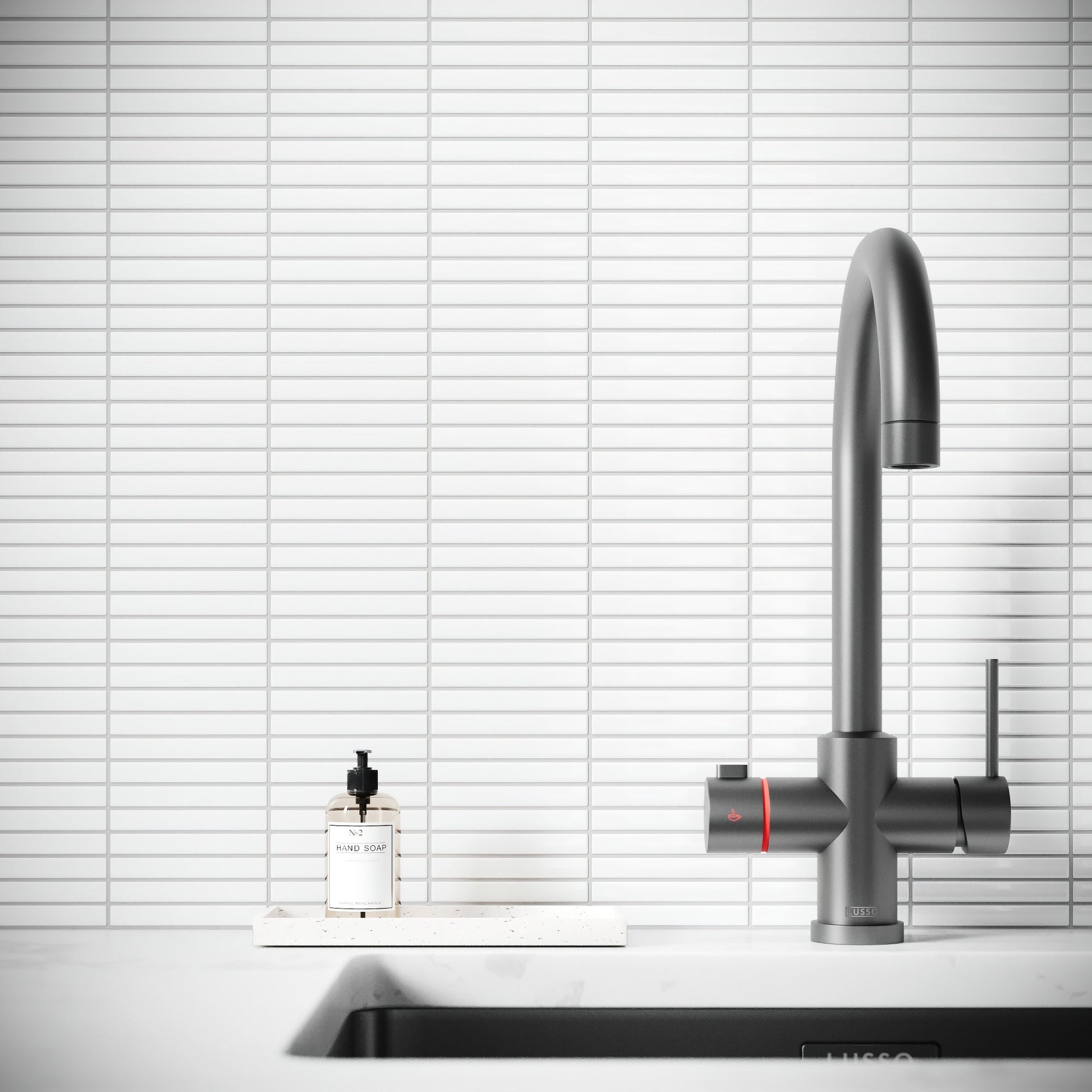 The mosaic tile adds visual interest to a space and can be styled with all colour palettes. The white tone looks beautiful complemented by our Cortese® Stone pieces including basins and baths.
