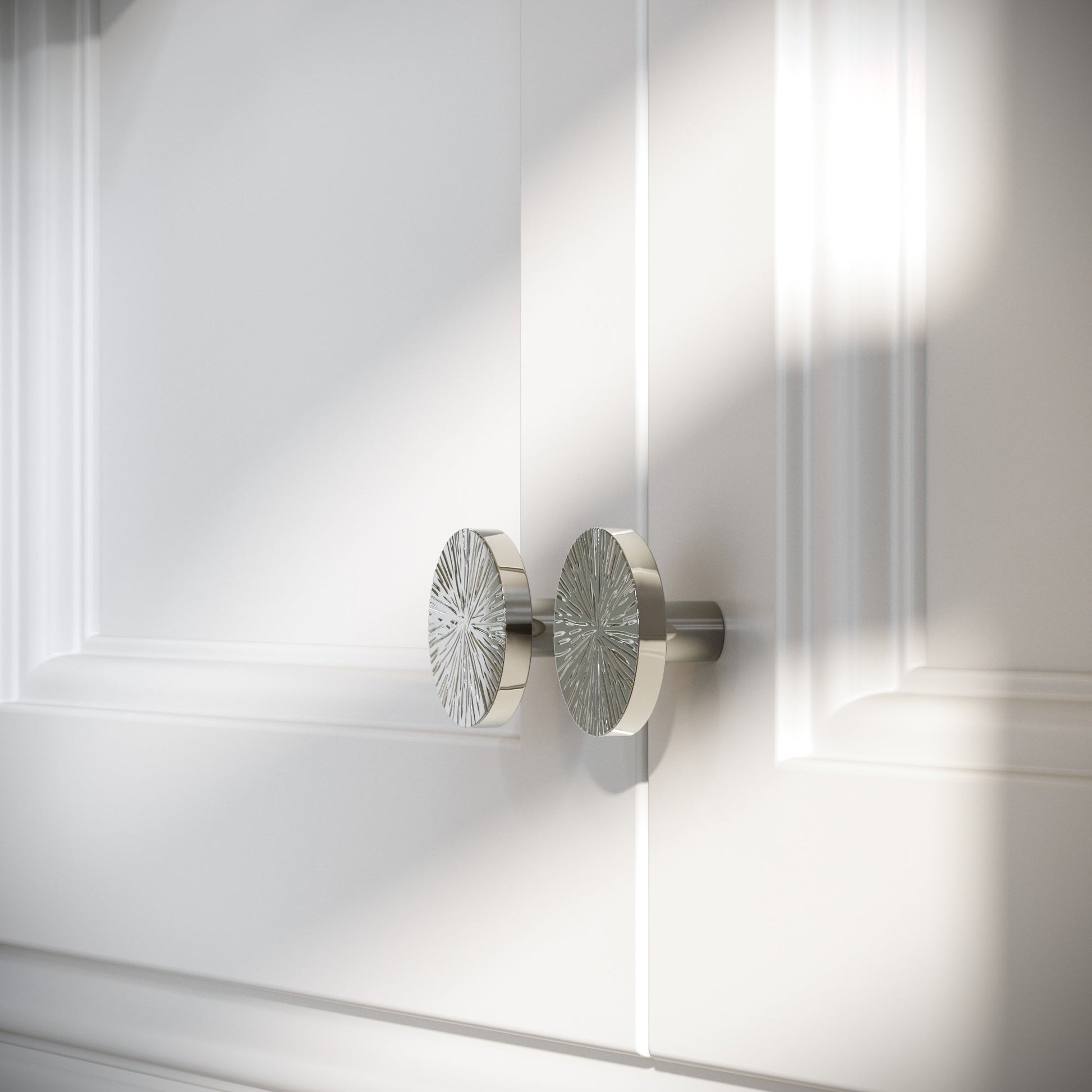 The cabinet knobs will make the perfect finishing touch to your space and are finely detailed with a sunburst design, which is a modern interpretation of the iconic Art Deco emblem. The rounded handles can be matched with our other polished nickel pieces, such as taps and showers, depending on where they’re placed within your home.