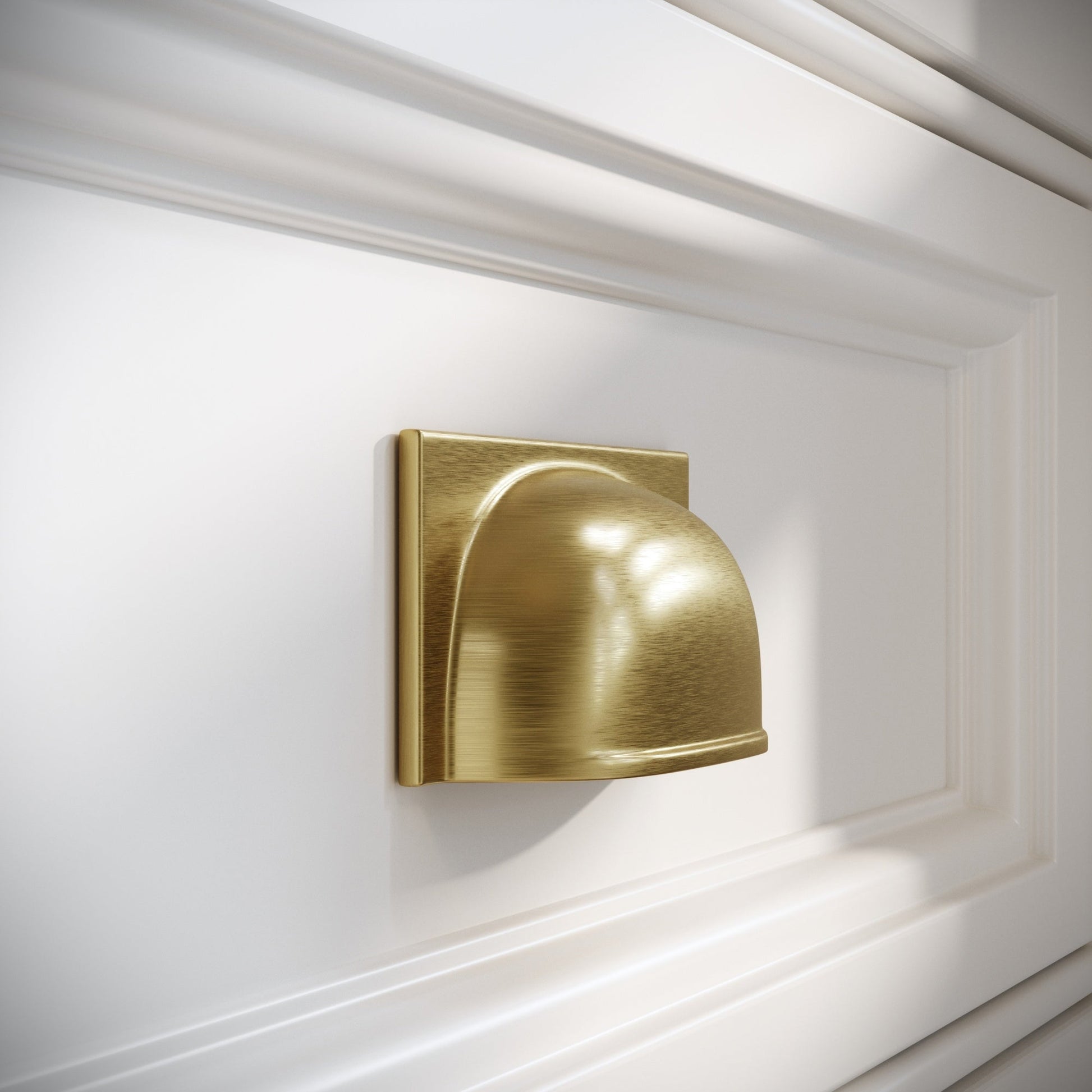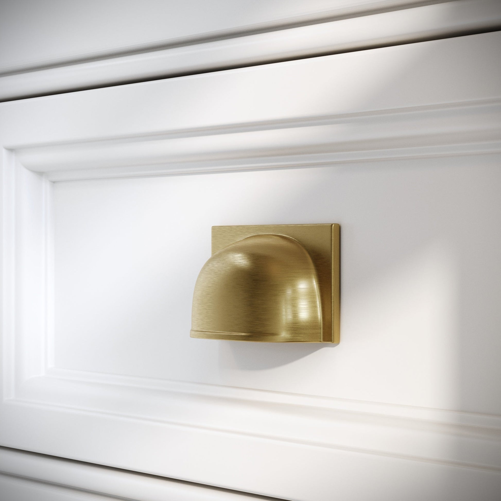 Defined by its distinctive cup shape and opulent brushed gold finish, the Brook pull handle adds unique character to your home.