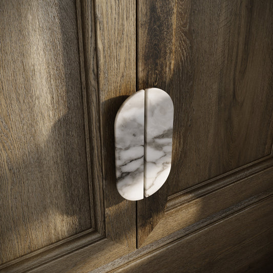 Embracing a minimalist design, in a domed silhouette, the cabinet knobs are crafted from the finest Arabescato marble. Extracted from the North of Italy, Arabescato displays smokey grey waves that wander through its crisp white base. The distinctive design can be styled throughout all living spaces including cabinets, drawers and wardrobes. The Arabescato cabinet knob beautifully complements our collection of vanity units and basins.