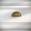 The Harris pull handle is defined by its distinctive cup shape that can be adorned to cabinet doors, kitchen units, dressing tables and vanity units. The aged bronze finish displays a beautiful copper undertone that purveys a worn, dated look ideal for mid-century modern and vintage interiors.