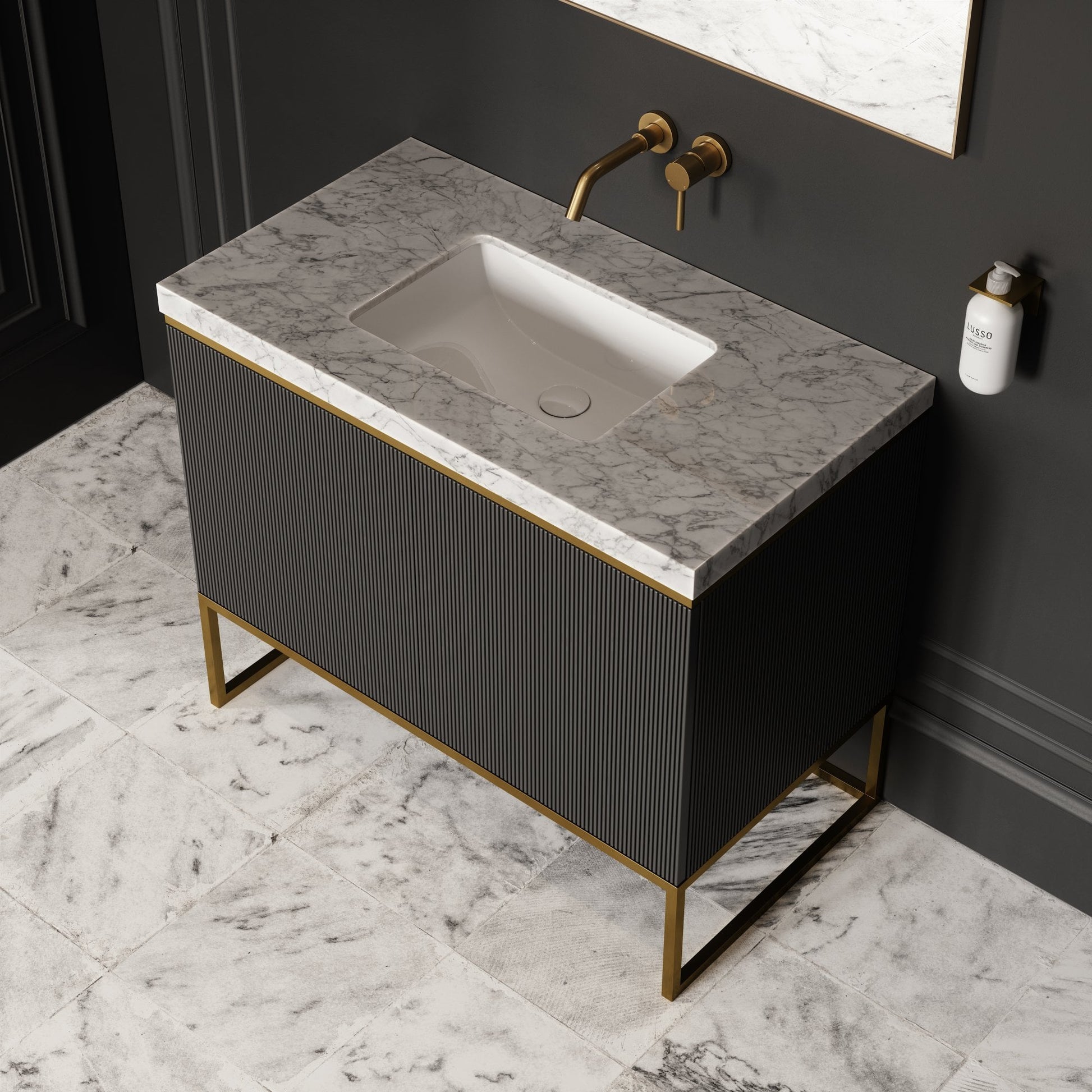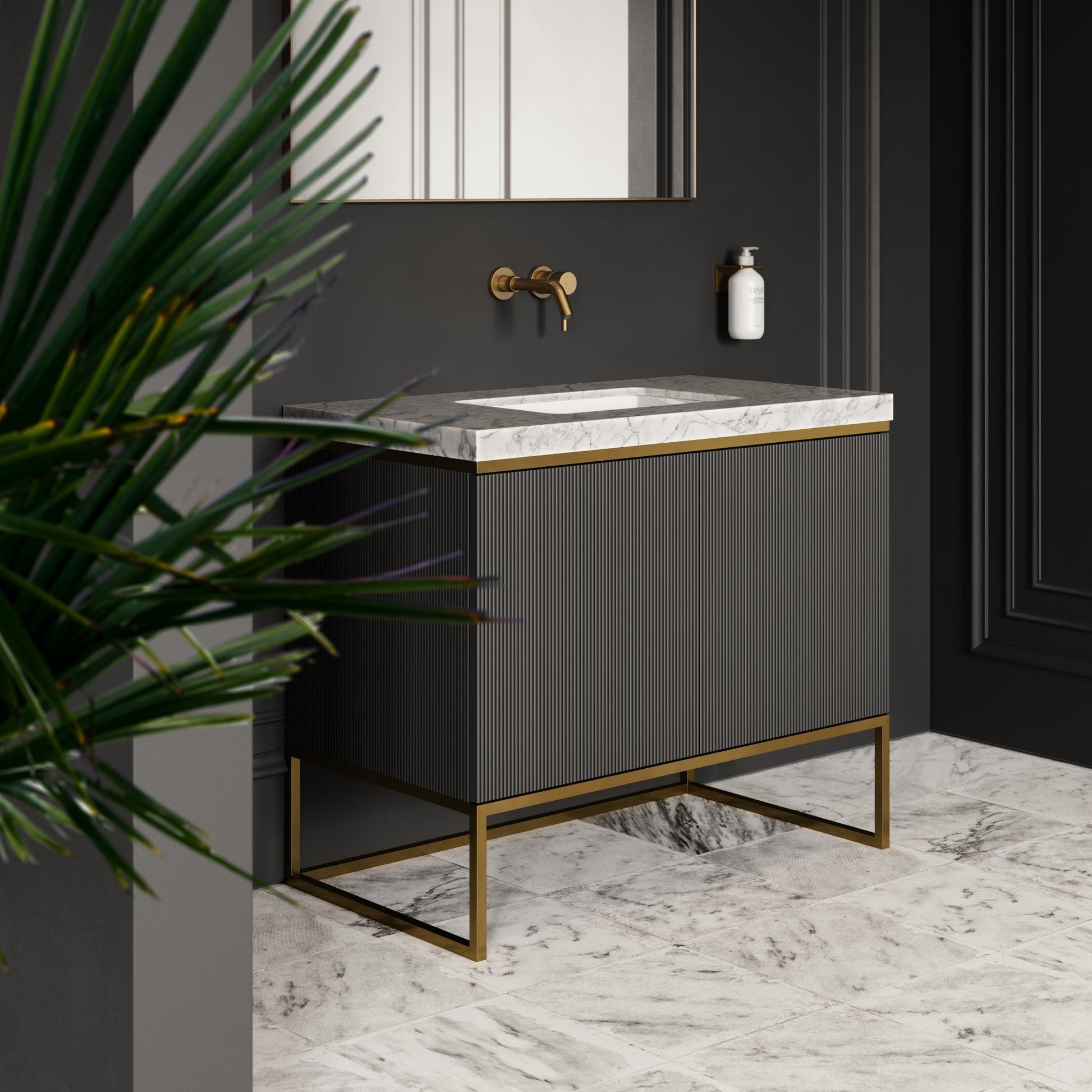 Our Couture collection of vanity units is defined by modern fluting, beautiful Carrara marble and striking brushed gold framework, that comes together to offer exclusive luxury for the home.