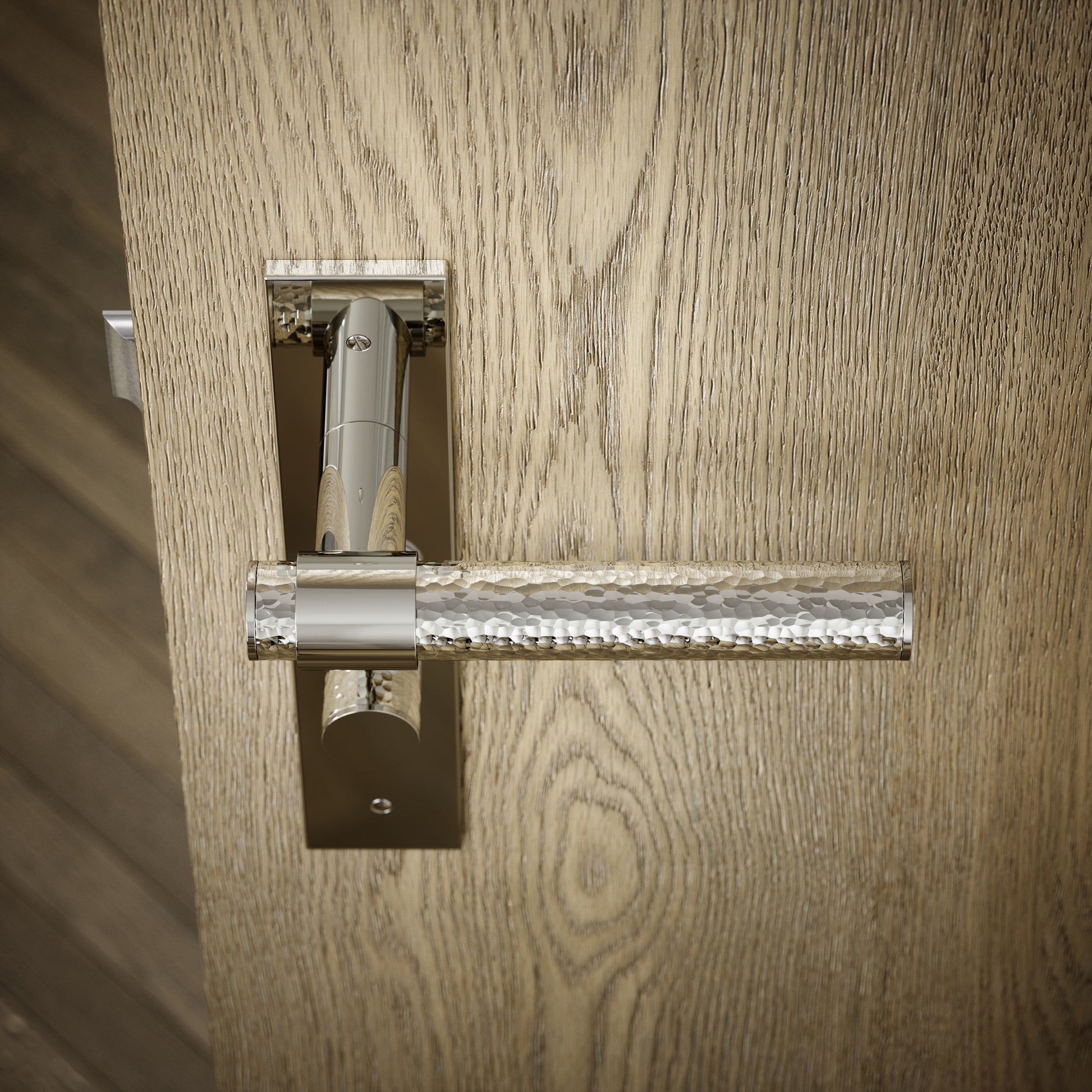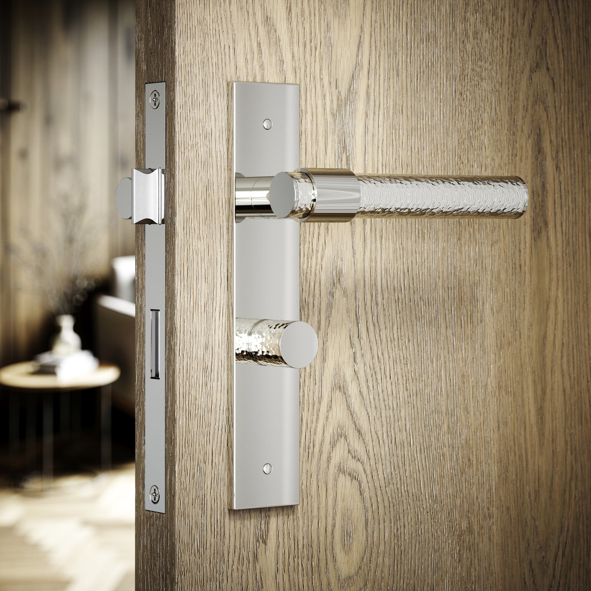 The handle and lock set is expertly crafted from solid brass, and displays a unique hammered surface that adds instant visual appeal to your internal doors. The handle is available in our stunning polished nickel finish, which perfectly pairs with other pieces of the same finish from the Lusso collection. The Chester handles can be purchased as left or right variants.