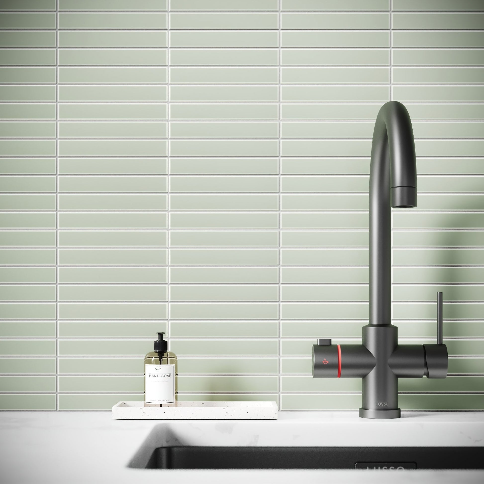 Baton Mosaic Soft Pear Green Matte Porcelain Wall Tile 296 x 300mm