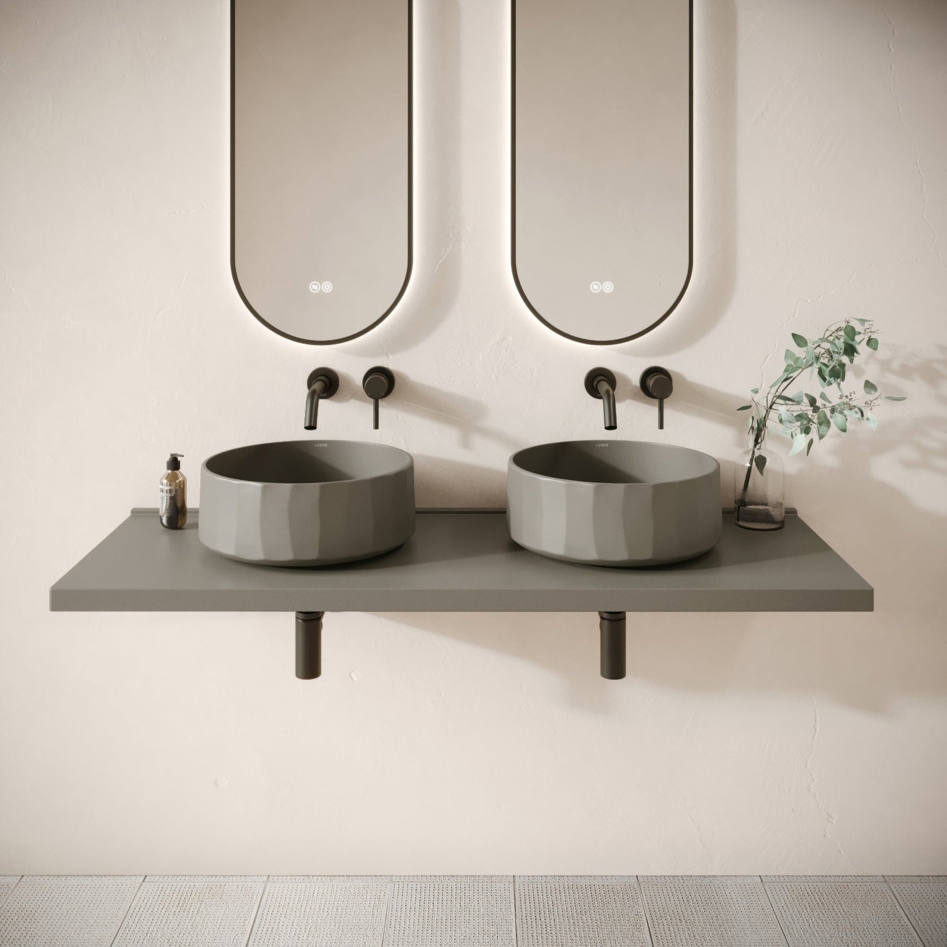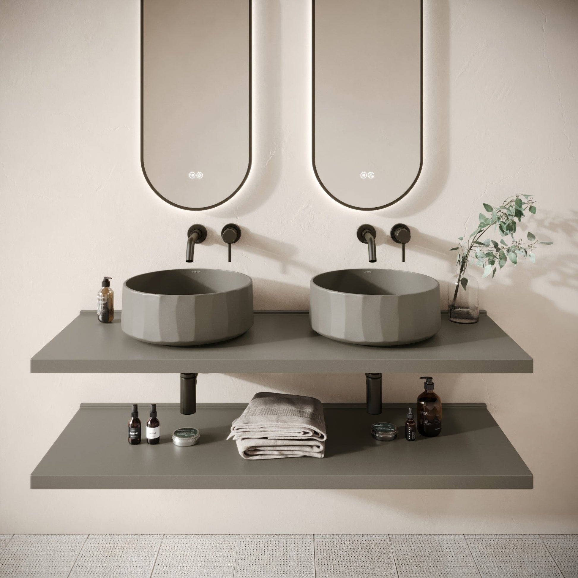 At 1400mm wide, this design is suitable for either single or double bathrooms thanks to its generous countertop space, and is perfect for styling with a Lusso concrete basin of the same deep grey Oyster finish. Crafted from aggregate-based concrete, the countertop shelf offers a smooth finish with crack and stain resistance, promising lasting luxury for your home.