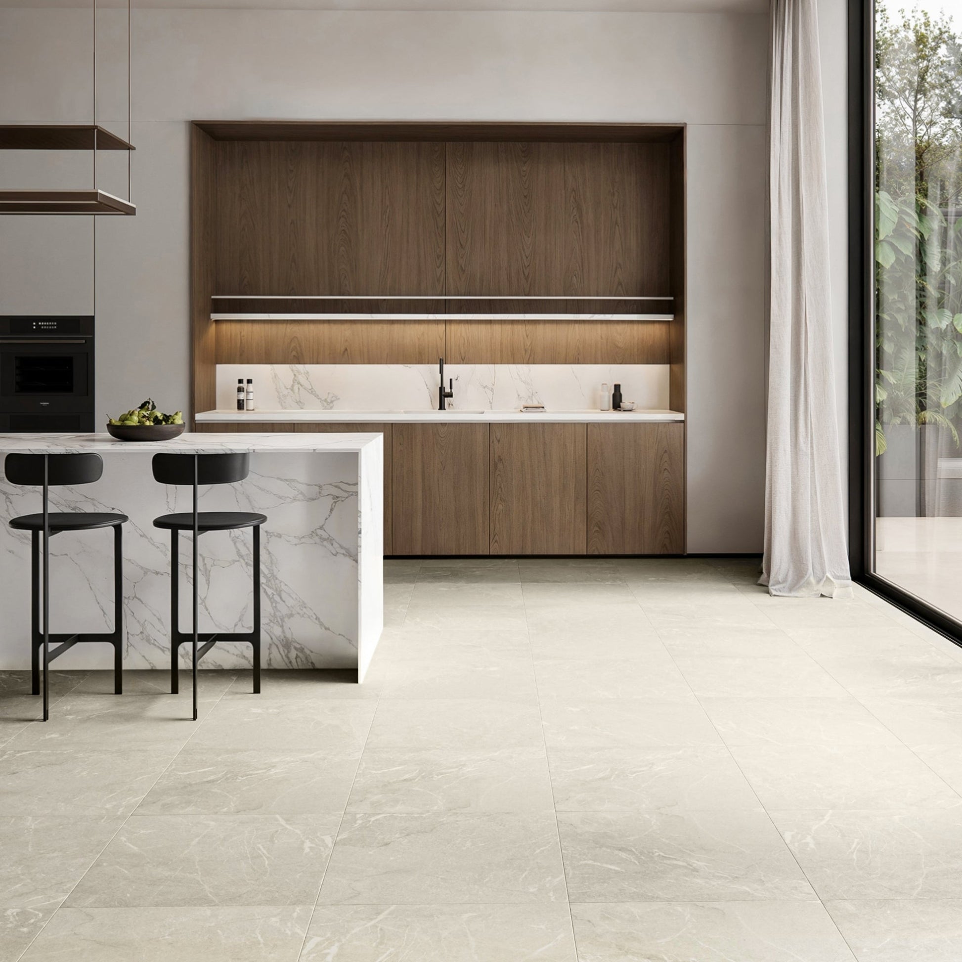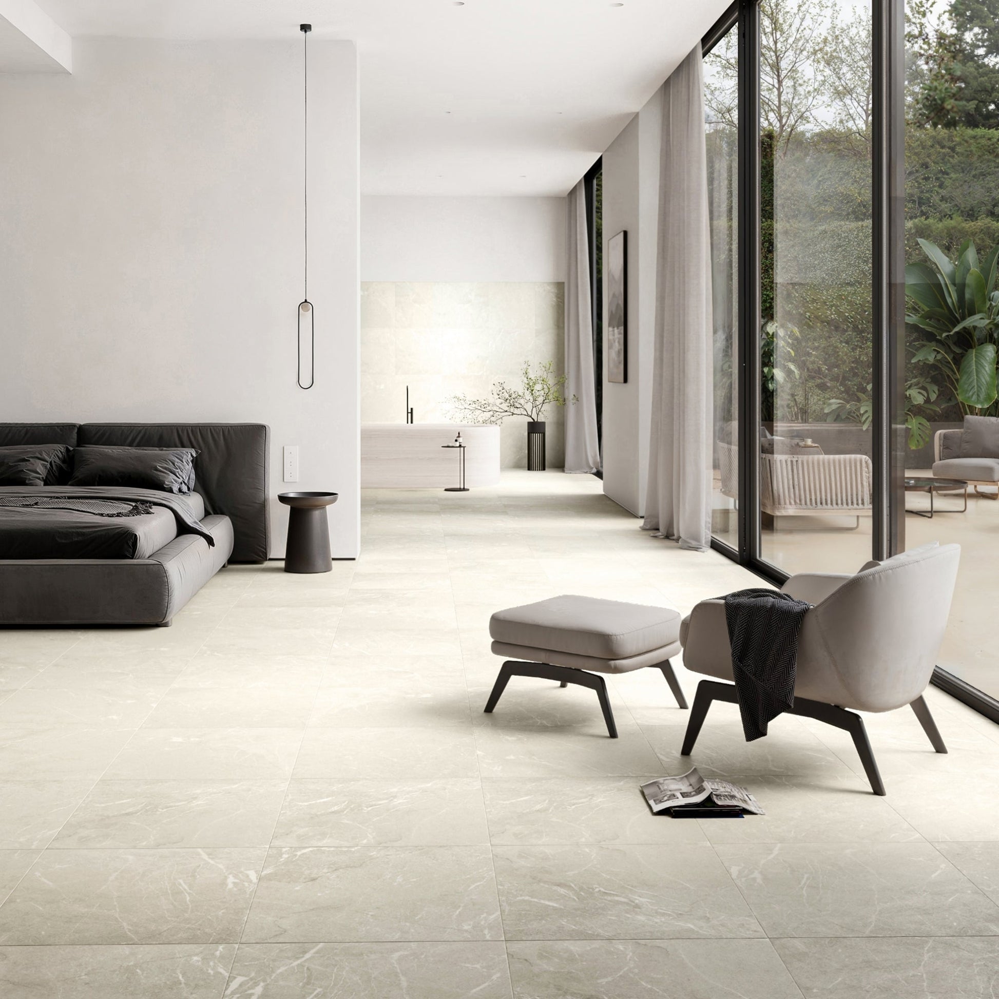 Offering the tactile look and feel of natural limestone along with the installation versatility of porcelain, the Vittorio tile brings lasting elegance to any living space.