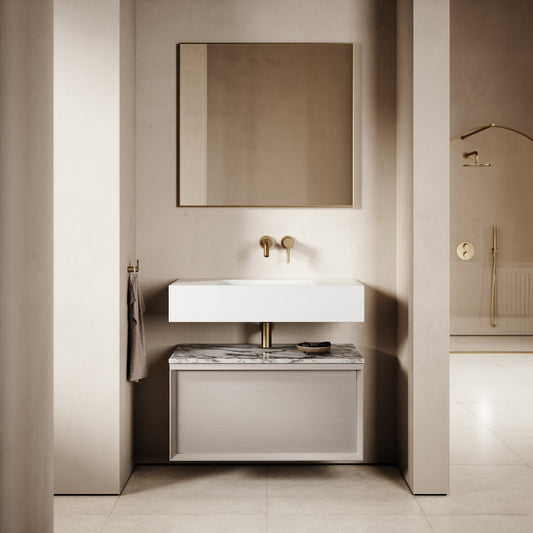 The freestanding vanity unit, designed in house by our CEO and founder, is a homage to both classical and modern styles, depicting notes of Art Deco, Greek architecture and contemporary design. At 800 mm wide, the vanity unit is the ideal choice for bathrooms that require an extra taste of luxury without compromising on space, and with generous cupboard storage, it allows you to neatly pack away the essentials such as towels and soaps.