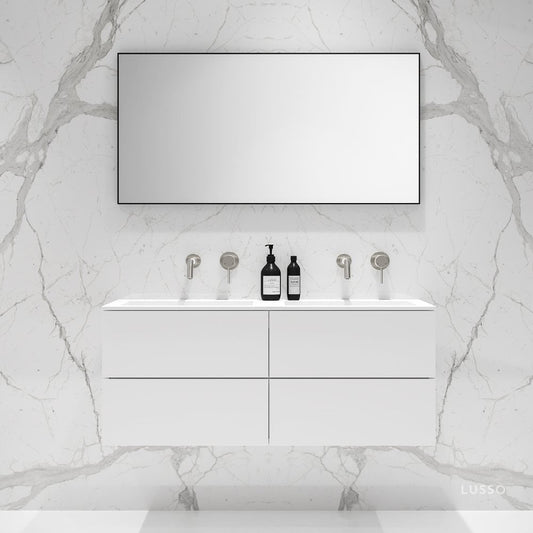 The effortlessly stylish design of the Lusso Volini Matte White 1200 mm Wall Hung Vanity Unit (with stone basin included) adopts two of the most coveted interior trends, a contemporary matte finish and elegant minimalistic storage. Incorporating a signature Lusso basin, the Volini Matte White 1200 mm Wall Hung Vanity Unit transforms any space into a luxury haven. Combining our ethos of exclusively using the highest quality materials with a sophisticated design, this basin makes a stylish statement in any space.