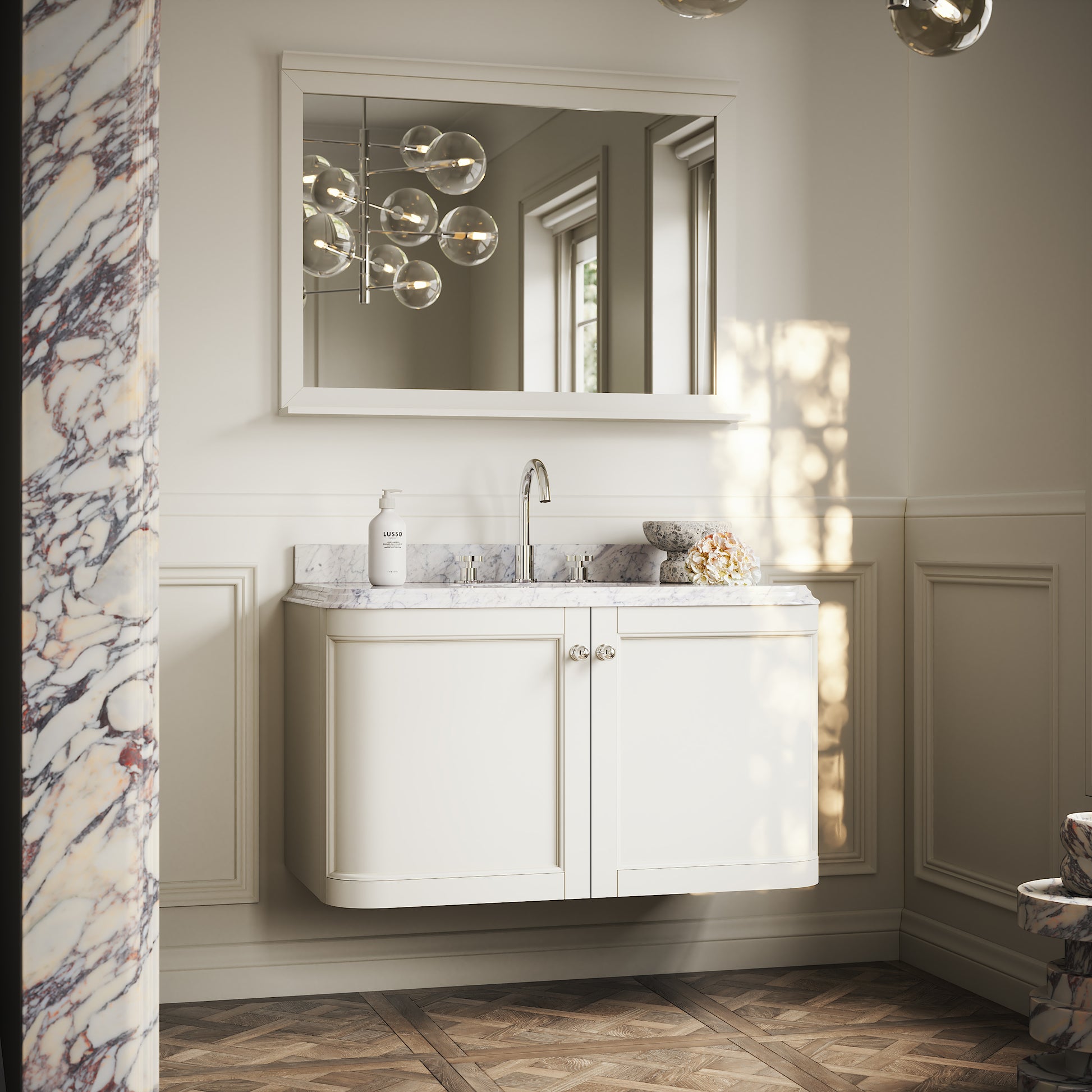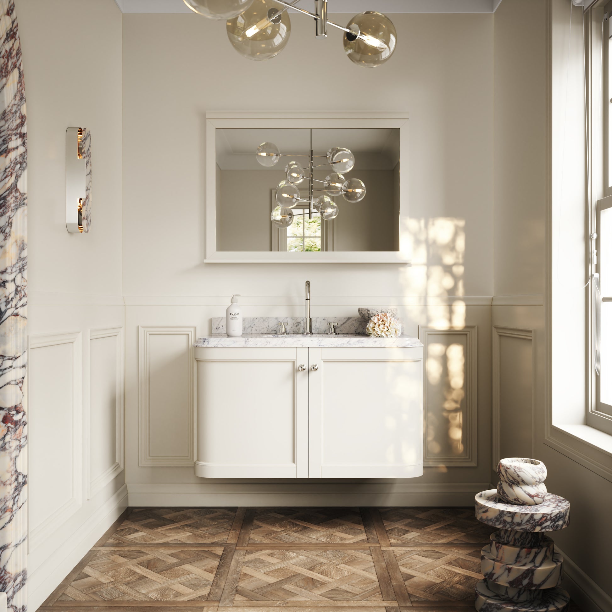 Showcasing beautiful curves, structured lines and stunning cove ogee bevelling, the Charsley Matte White Vanity Unit instantly reflects its timeless 20s influence.
