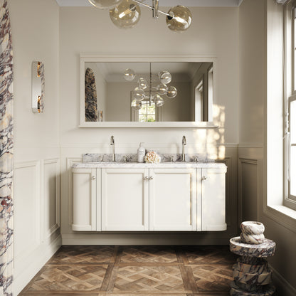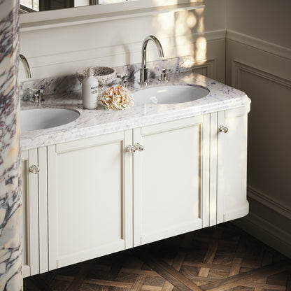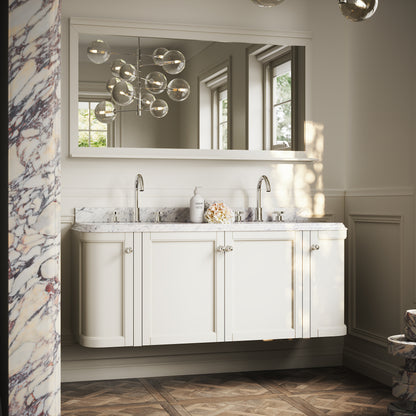 Featuring a double built-in basin, the Charsley is designed to offer luxury living for two, while its size offers easy placement in a larger proportioned bathroom. The wall mounted vanity unit is also crafted from durable marine grade plywood - designed to offer exceptional moisture resistance - that is beautifully primed for a long-lasting finish. Cove ogee bevelling to the edges showcases distinctive Art Deco notes.