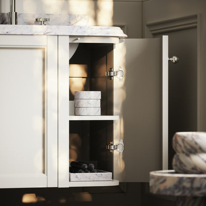 The generously sized bathroom vanity has been crafted to the highest of standards, featuring a soft closing, push-to-open mechanism that negates the need for door handles, unless preferred. If you do wish to use handles, the hinges are completely concealed so you can pair it with your ideal bathroom taps and fittings without the need to coordinate the finish.