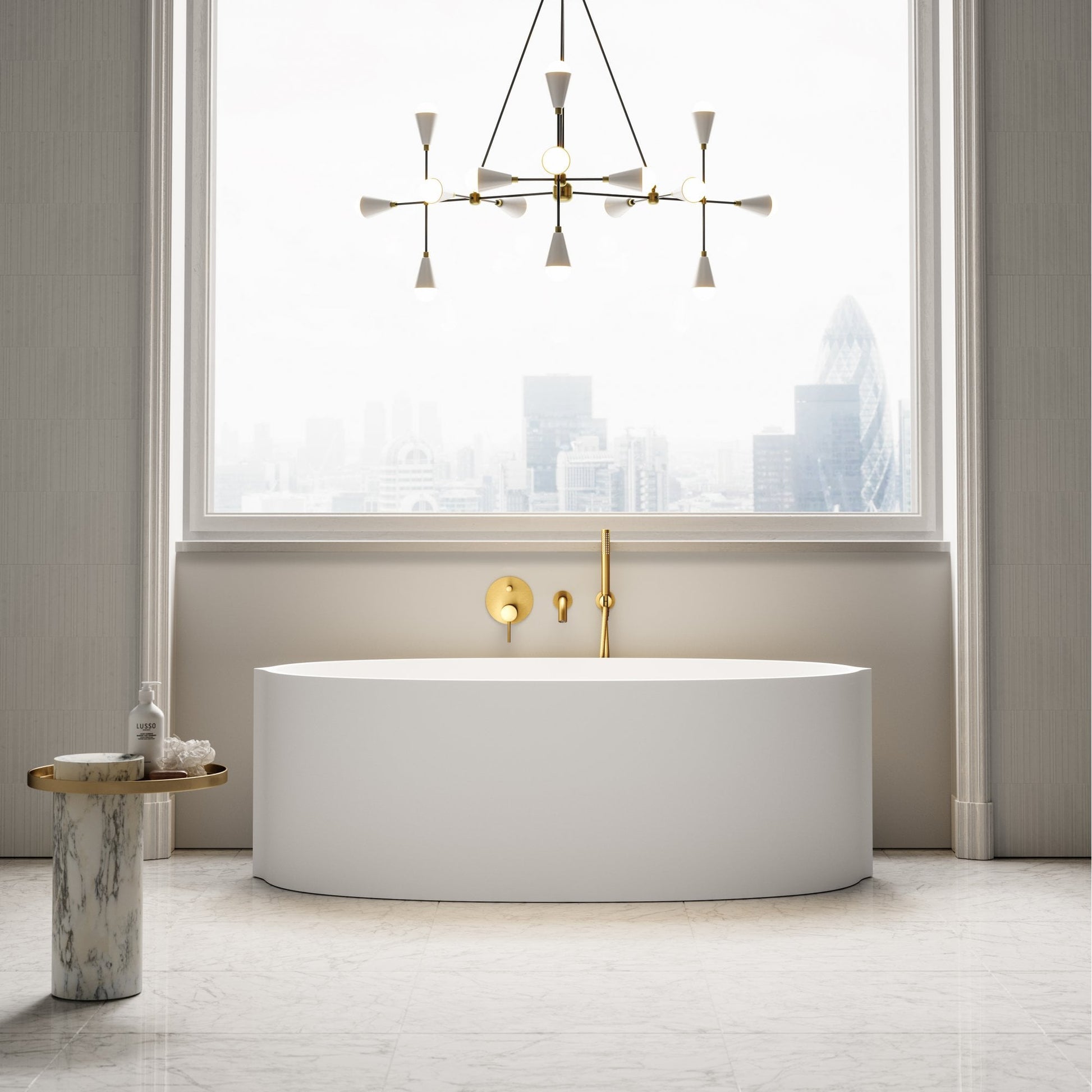 The Cielo stone freestanding bath is designed for pure indulgence. Inspired by luxurious resorts and hotels, the Cielo embodies timeless design blending classic elements with contemporary styling. The uniquely oval bath shaped with sculpted ends is distinctly modern without sacrificing sophistication, with hand-finished details exclusive to Lusso. For unrivalled excellence in quality and craftsmanship, the Cielo is a masterpiece in luxury design that can be easily accessorised with our collection of bath taps and accessories to achieve any desired look.