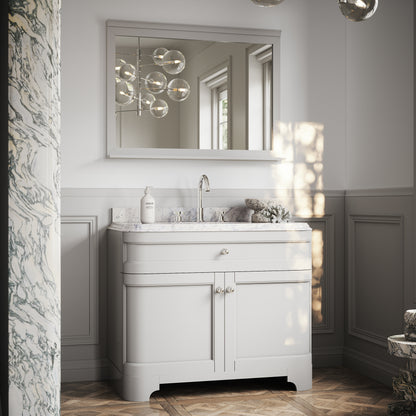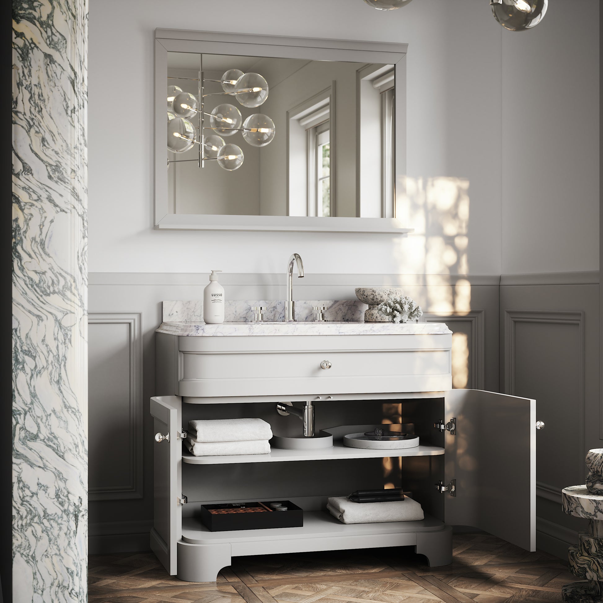 The 1000 mm freestanding vanity unit is suited to a selection of spaces, and provides generous storage. It’s crafted with soft closing, push to open cabinet doors that eliminate the need for door handles, unless preferred, alongside concealed hinges to give complete freedom when choosing accompanying fittings.