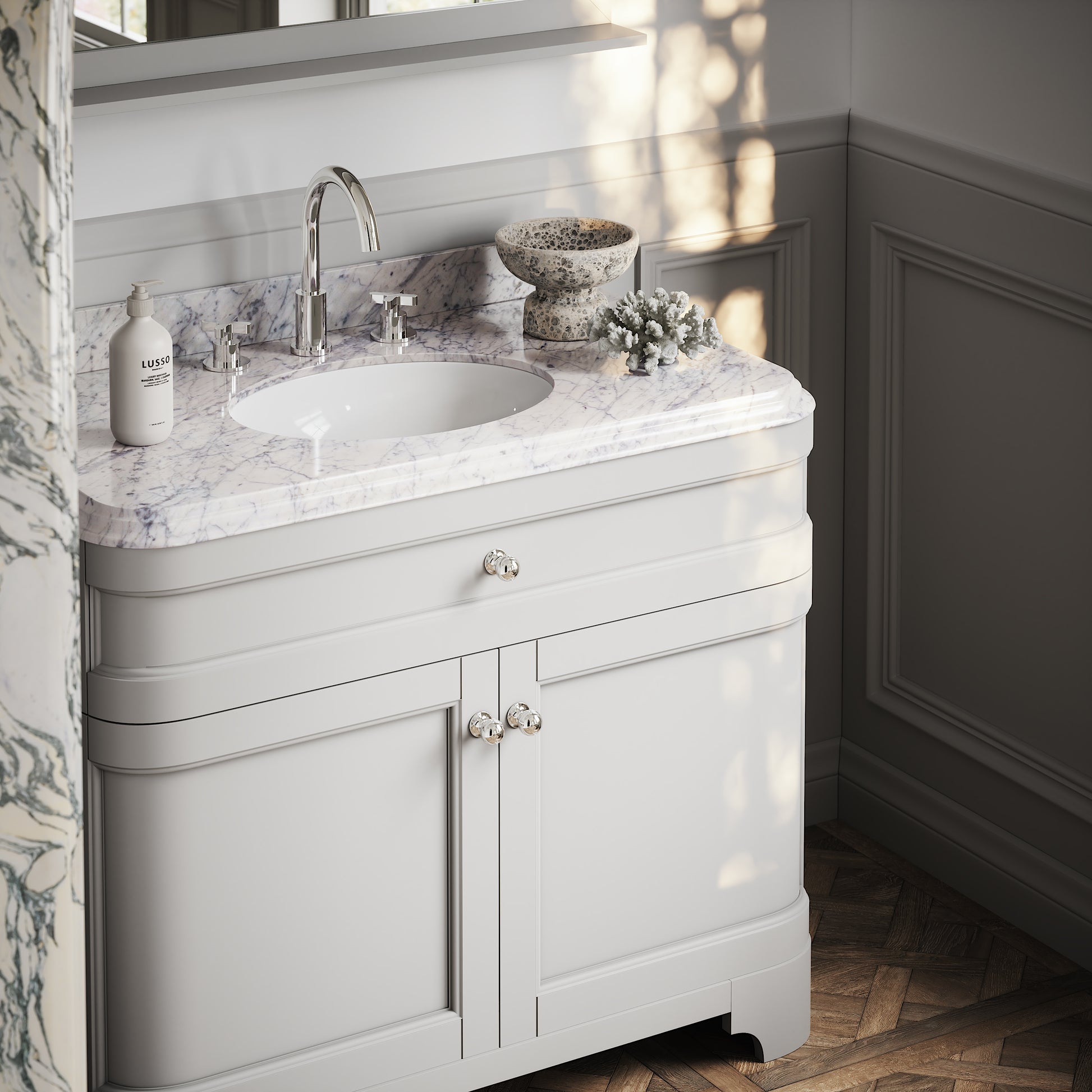 With soft curves, bold symmetry and beautiful marble, our Connaught Vanity Unit is the perfect choice for a bathroom that blends tradition and contemporary styles, taking design cues from the 1920s and fusing it with modern interior design.