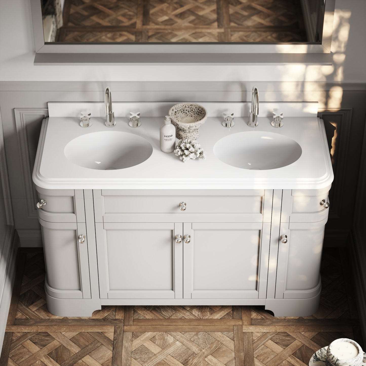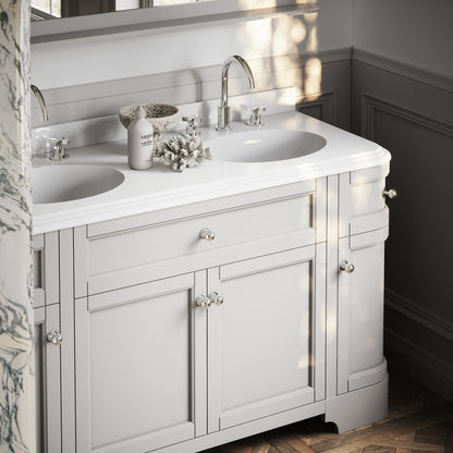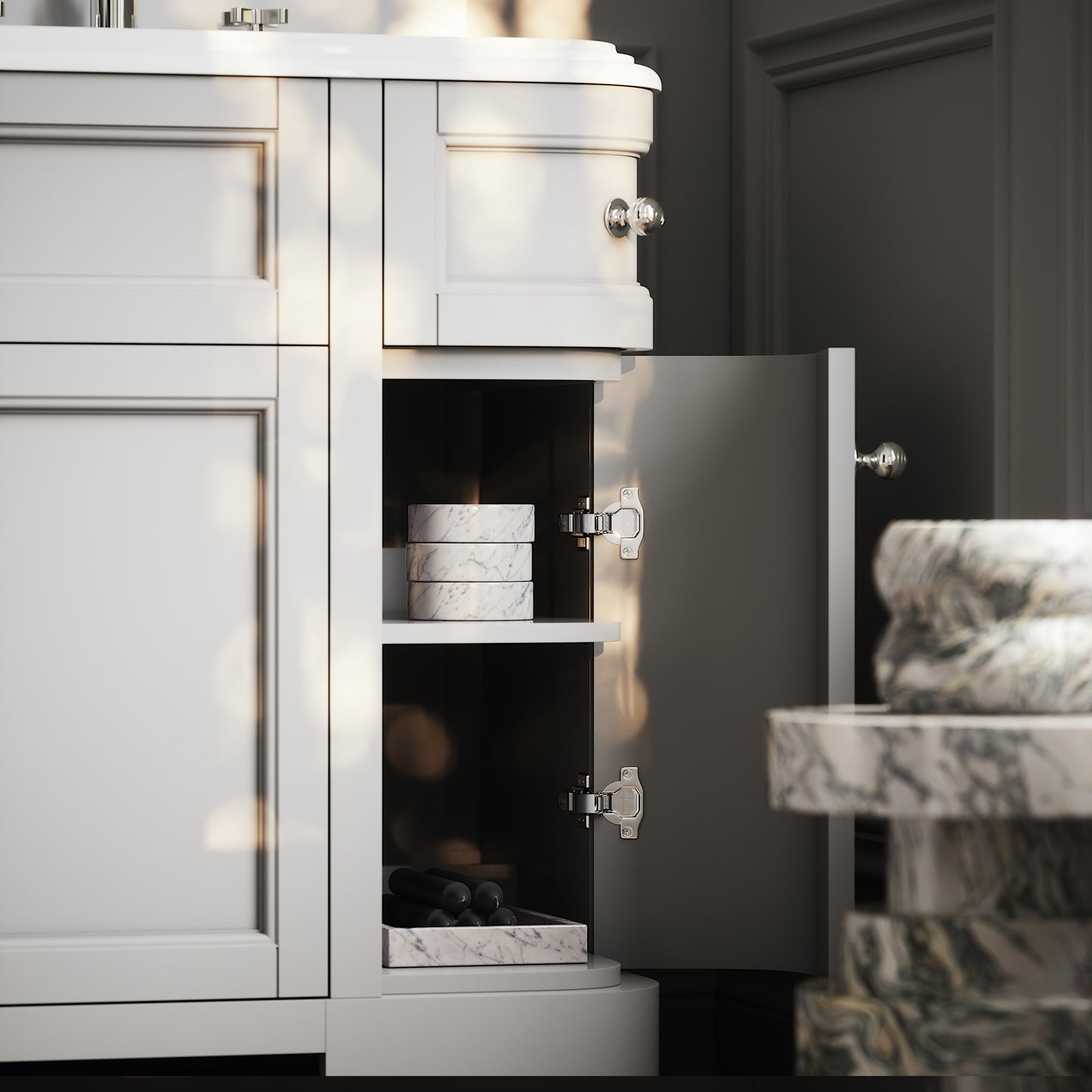 The soft curves, bold shapes and intricate finishings make the Connaught Double Vanity Unit the perfect bathroom addition for couples or families, taking design notes from the 1920s and fusing it with modern interior design.