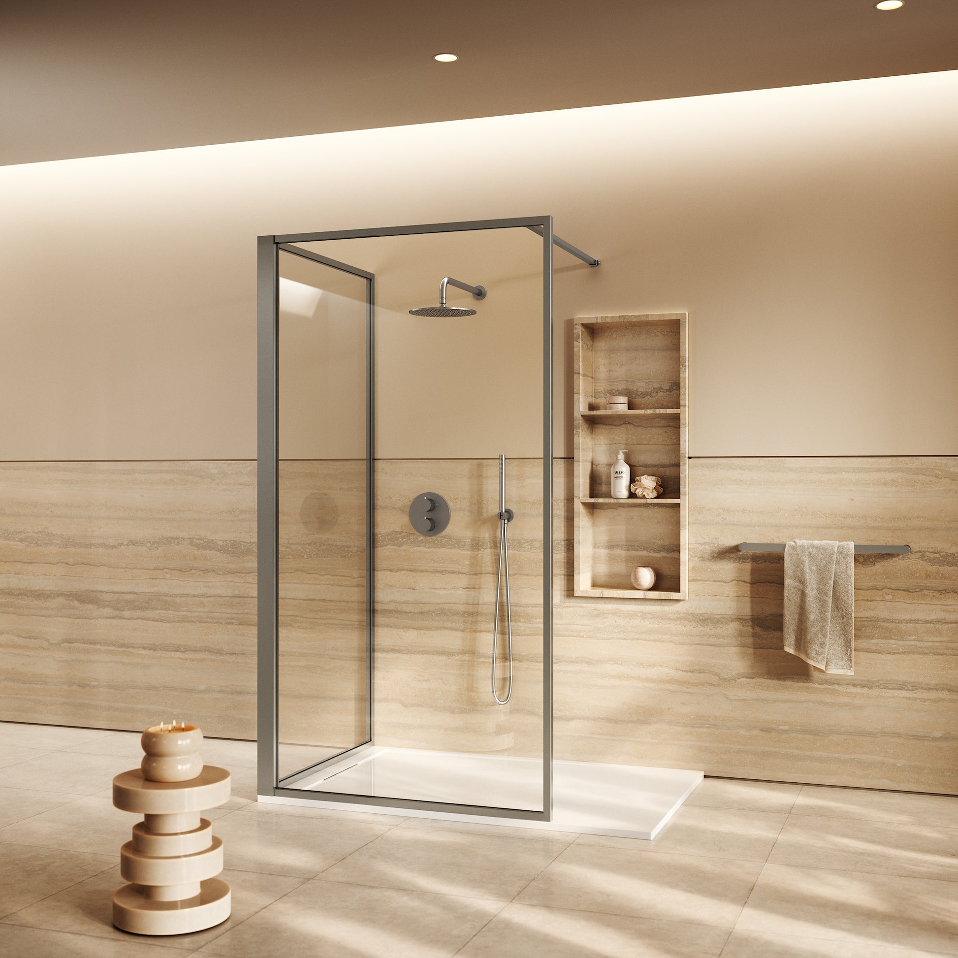The Designo Kit includes two 8mm toughened glass screens treated with Clear Glaze technology, ensuring a seamless installation, easy maintenance and long-lasting water resistance. Accompanying this, is a stone resin anti-slip shower tray - available in both a matte and polished finish - alongside a fast-flow waste kit, glass wall fixing kit, bracing bar and corner fixing kit, providing everything needed for an effortless installation.