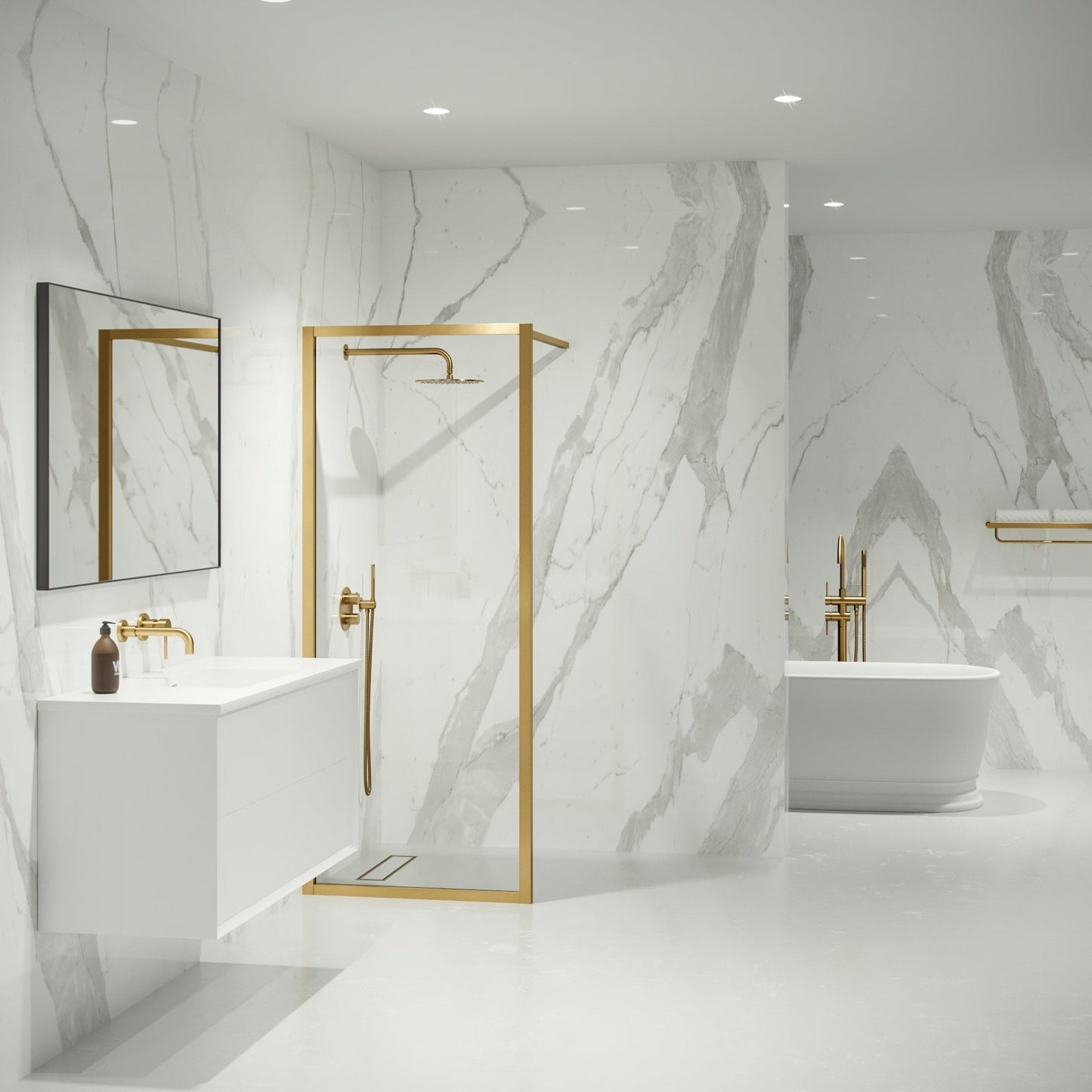 Introducing the latest release of the Mayfair gold shower screen enclosure, a vital component which represents a meticulously managed fusion between classic and contemporary styles. Its timeless look offers a scaleable and versatile collection, to collaborate with our current brushed gold Luxe range.