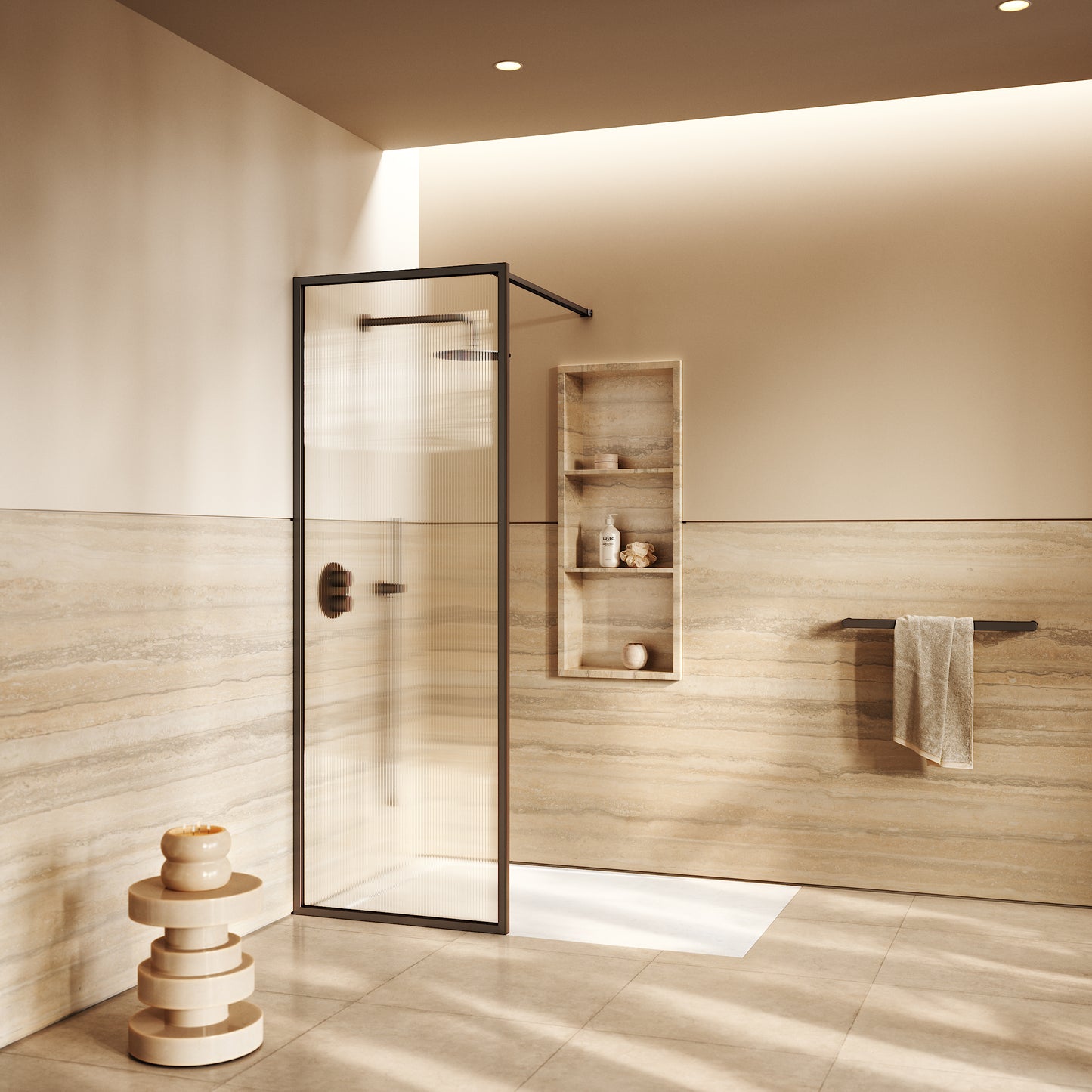 Model: Opulence Reeded Glass Complete Walk In Shower Enclosure - KIT A