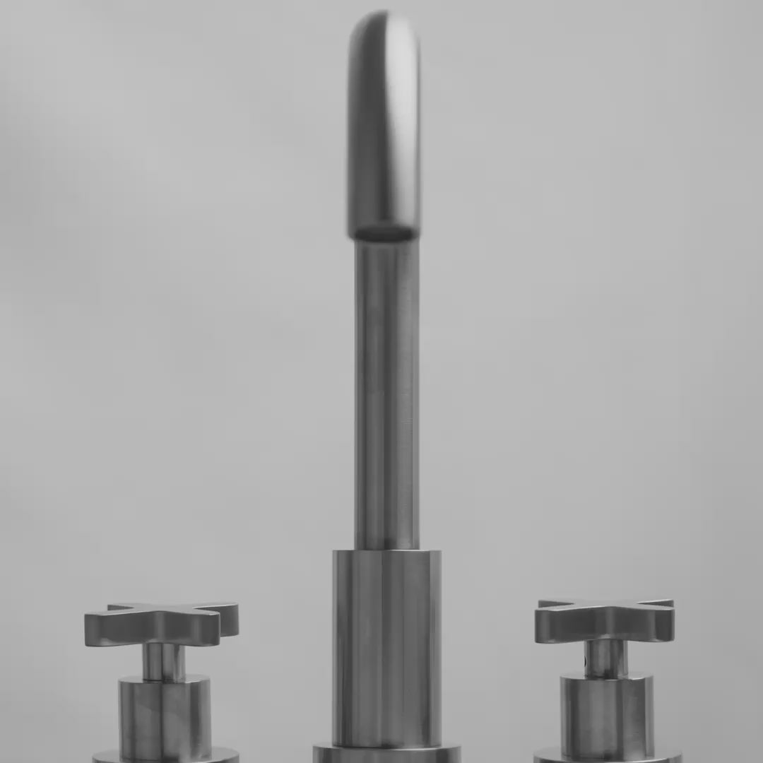 Featuring distinctive crosshead handles for ease of use, this deck mounted tap includes a single curved spout to provide both hot and cold water. With its brushed stainless finish, the design also complements a wide array of interior styles and seamlessly coordinates with our broader range of brushed stainless bathroom brassware and accessories.