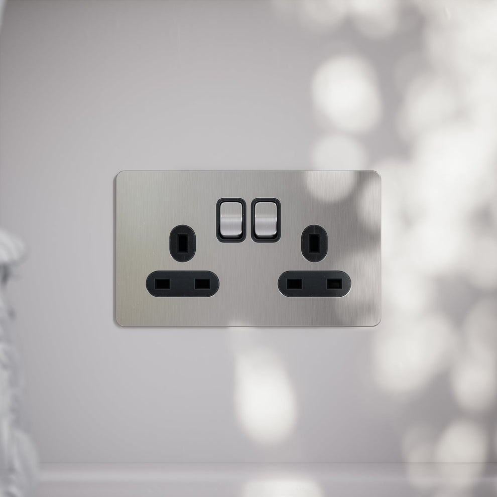 SlimTech Collection Brushed Stainless 2 Gang 13A Socket
