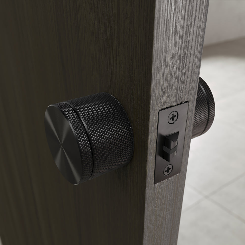 Exclusive to Lusso, the Spectre knurled door handles are defined by its diamond cut knurled detail, brushed black finish and modern round silhouette.