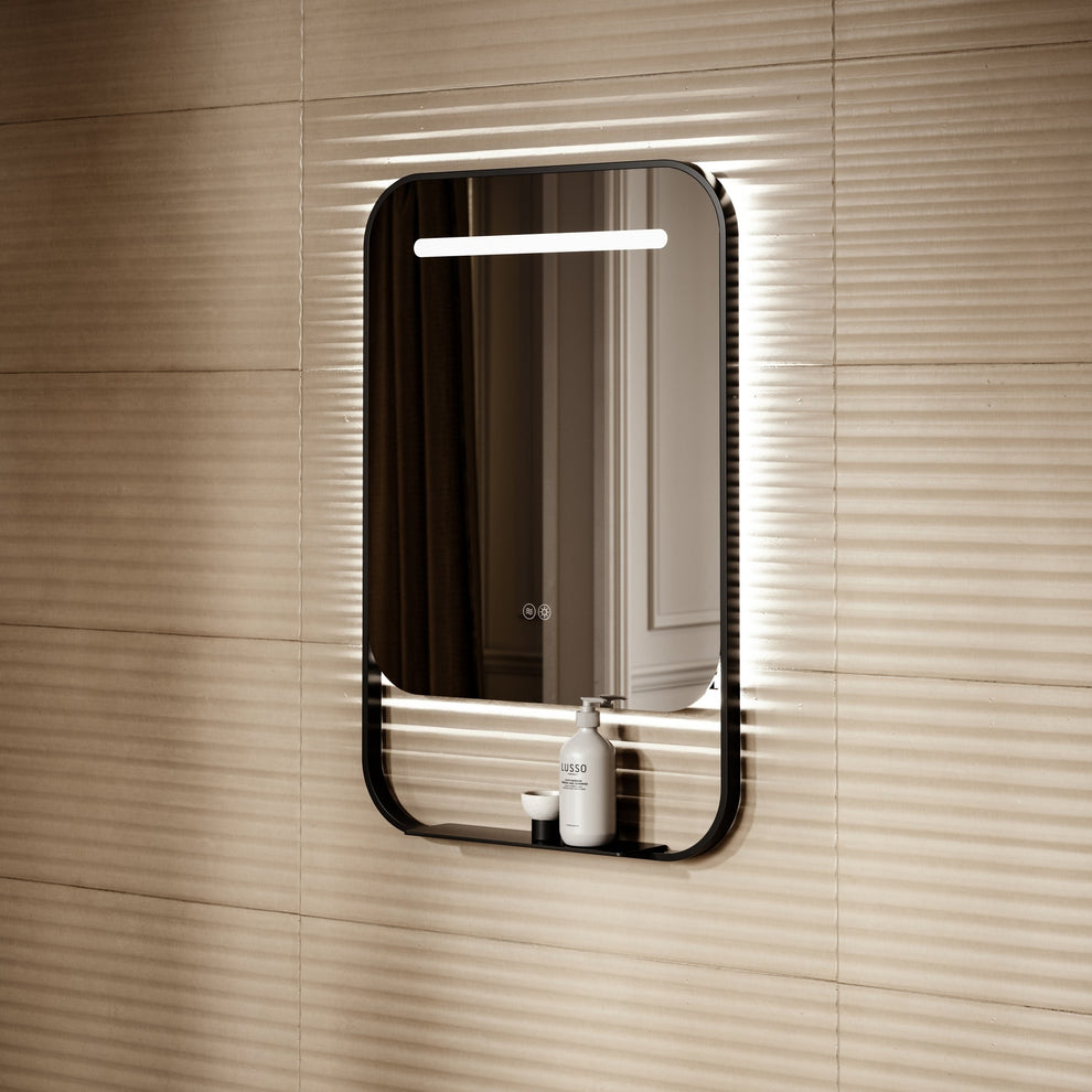 The Vario Mirror is a contemporary decorative piece defined by its matte black frame and touch control back lit LED.